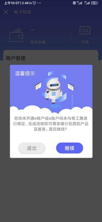 注:该页面提示请先开通电子钱包