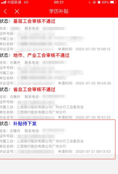 学历补贴申请已审核通过,等待下发。