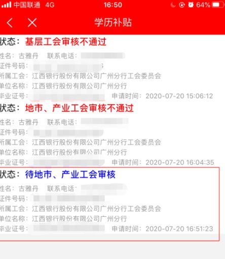 基层工会审核通过后由地市/产业工会审核,基层工会审核不通过用户可重新提交申请,申请时间按照最新一次提交申请的时间计算。
