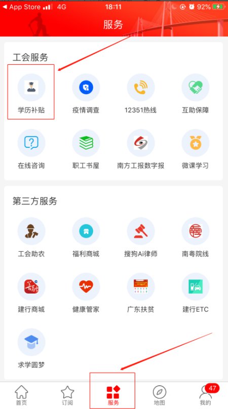 4.进入服务-选择工会服务-学历补贴