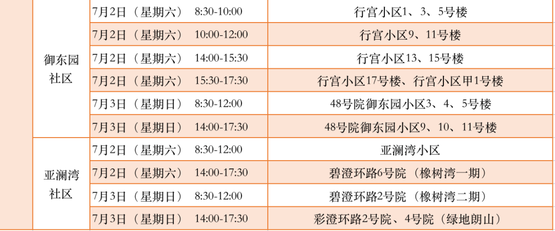 附:城区各社区信息审核时间安排表