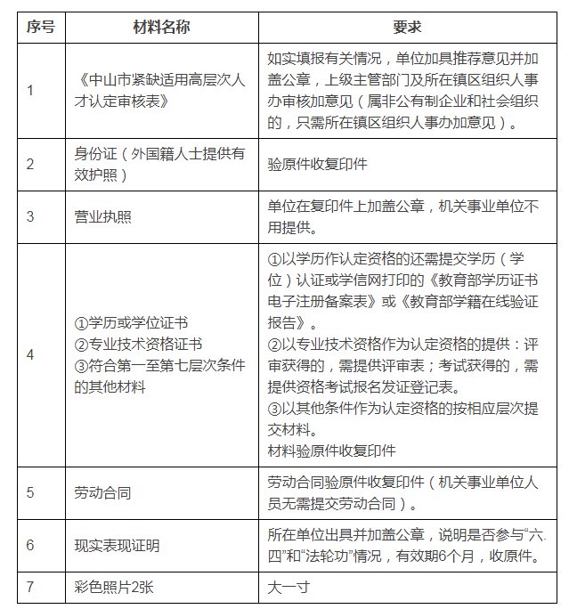 中山市紧缺适用高层次人才认定办事指南