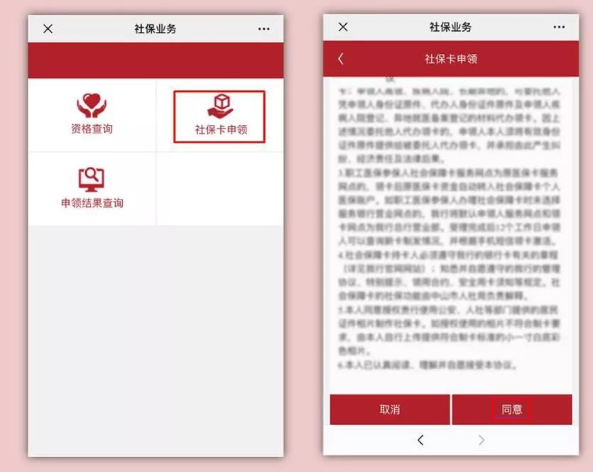 点击社保卡申领,认真阅读并同意社保卡申领协议