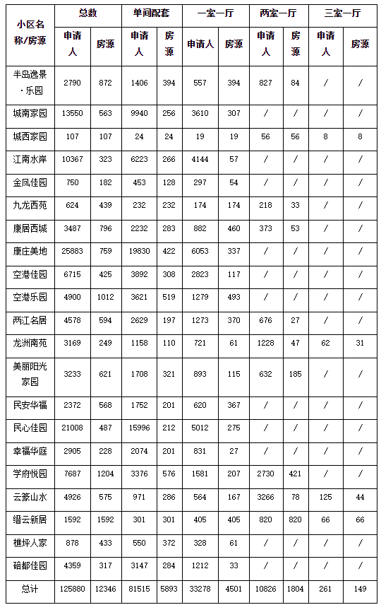 各小区房源和对应申请的具体情况可到各申请点咨询。