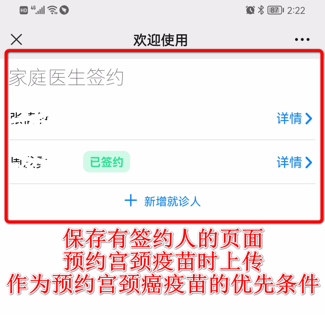 签约后请截图保存签约后的页面,在宫颈癌疫苗预约时作为佐证资料上传,如下图示例↓