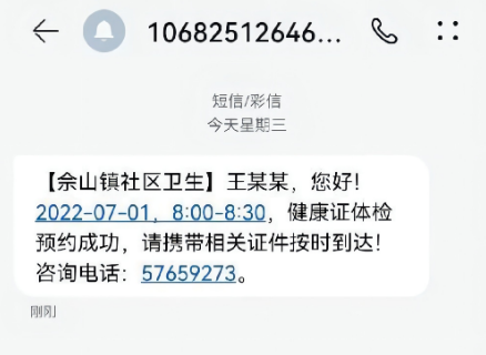 第四歩:预约成功收到短信通知