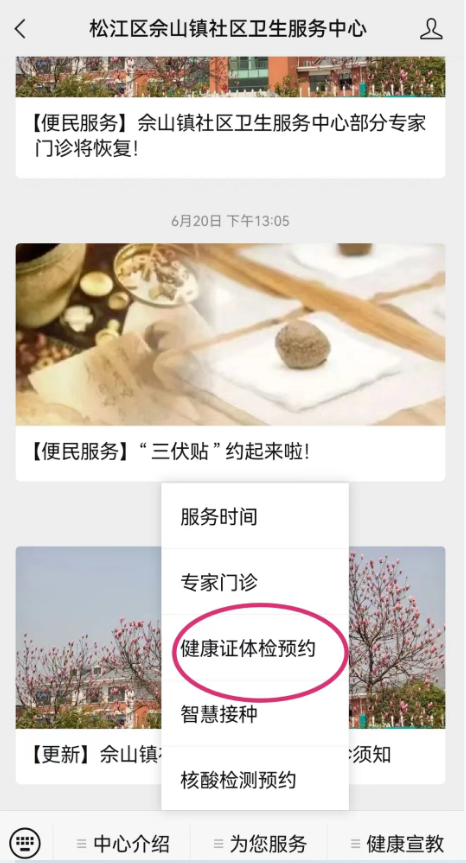 第一步:关注“佘山镇社区卫生服务中心”微信公众号