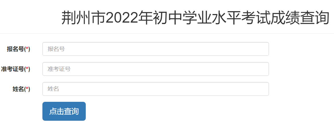 2、进入“荆州市2022年初中学业水平考试成绩查询”系统后,按照系统提示输入报名号、准考证号、考生姓名即可点击查询。