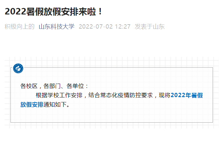 (一)教师和学生7月15日至8月28日放暑假,学生返校具体安排另行通知。