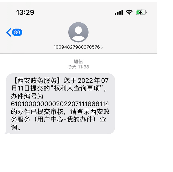 2、发起申请通知后,会受到短信提醒