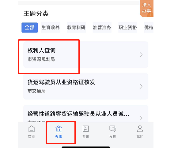 (1)点击【办事】—权利人查询