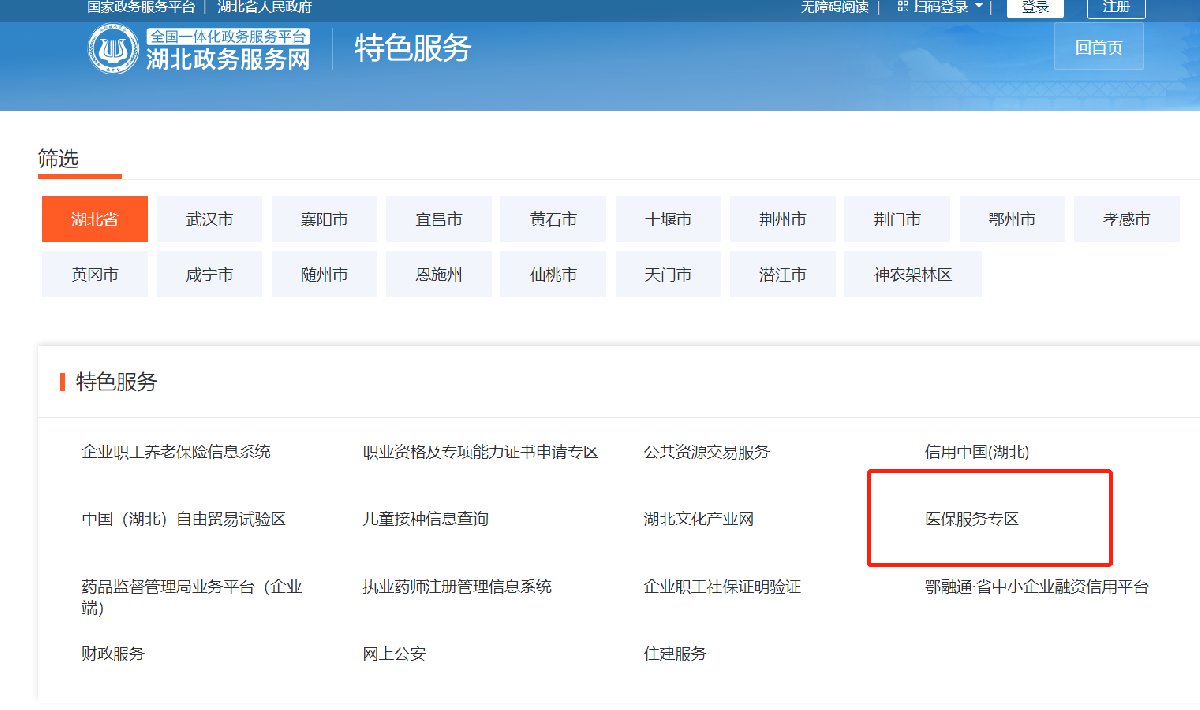 1、湖北政务服务网-特色专区-医保服务专区-湖北医保服务平台-单位网厅