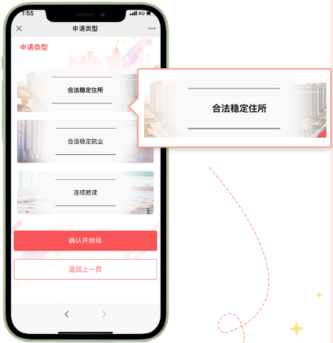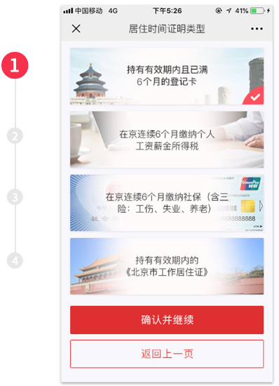 类型一:选择“持有有效期内且已满6个月的居住登记卡”作为居住时间证明