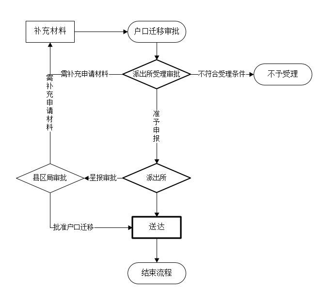 申请人向迁入地派出所提出申请并提交材料,派出所调查核实报县级公安机关审批同意后,申请人到迁出地派出所办理户口迁出手续,然后到迁入地派出所办理户口迁入手续。