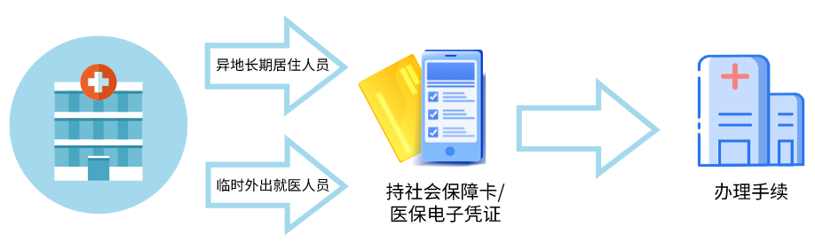 异地长期居住人员持本人社会保障卡或医保电子凭证,到所选择统筹地区的异地定点医疗机构医保办办理登记就诊手续。