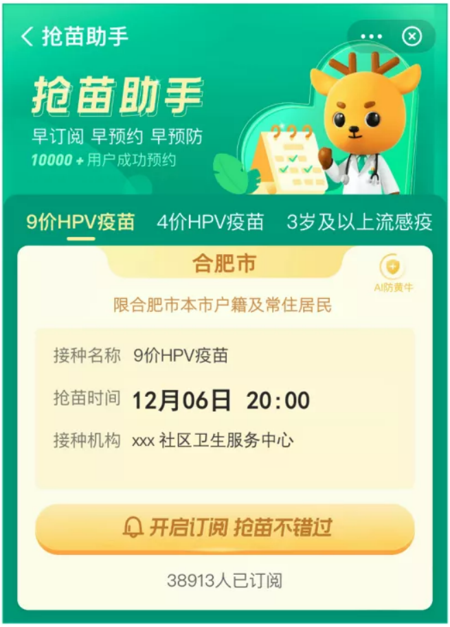 重要通知!庐江县4价/9价HPV疫苗可以在医鹿App平台线上预约啦!限庐江县户籍和常住居民预约数量有限,先约先得!