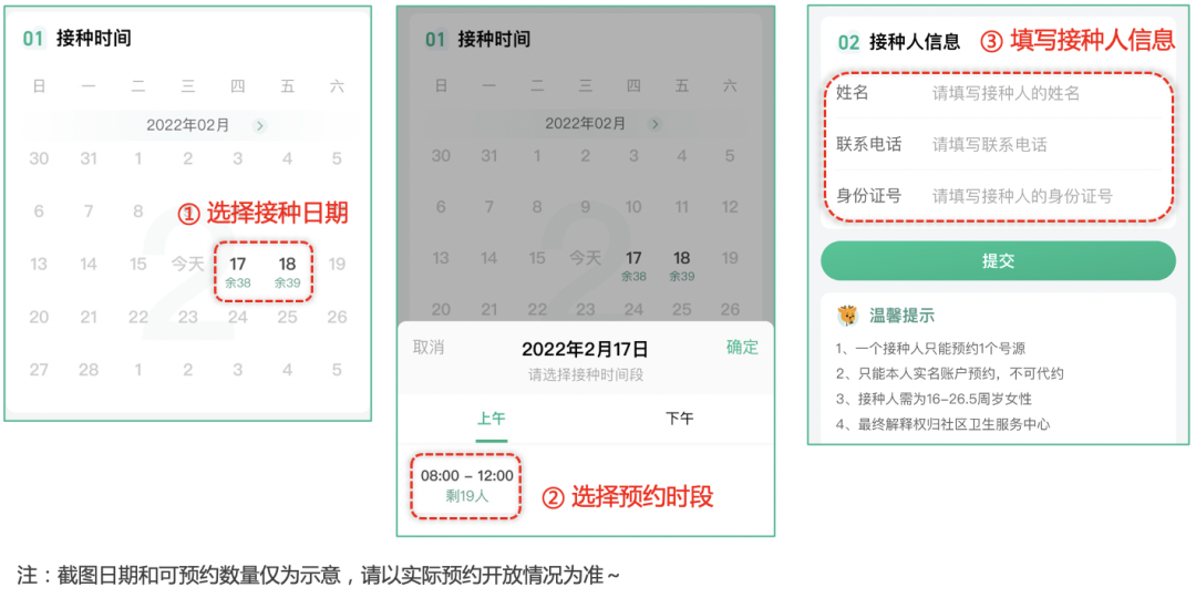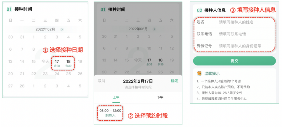 提示:请根据自身需求选择预约接种时间,并认真填写报名信息(很重要哦!)