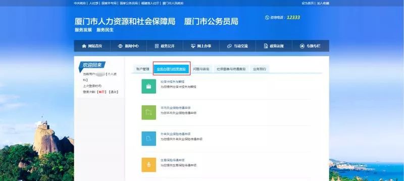 登录市人社局门户网站网上办事大厅https://app.hrss.xm.gov.cn/ggfwwt-portal