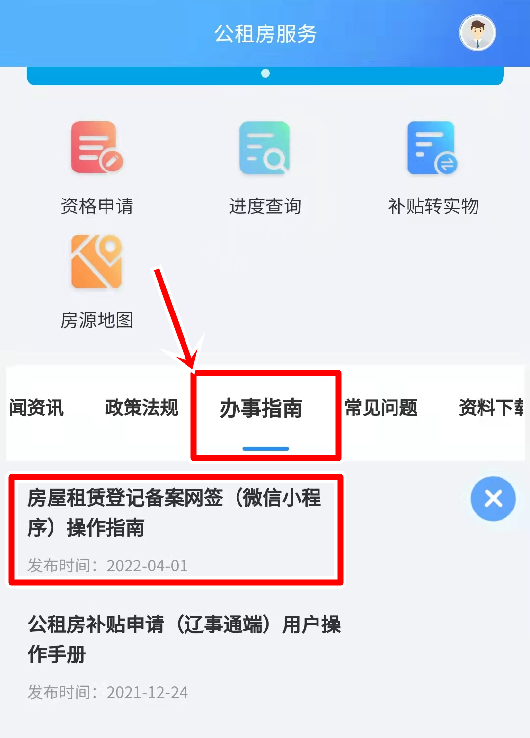 “辽事通”APP上的下载路径为:“住房租赁”-“公租房平台”;