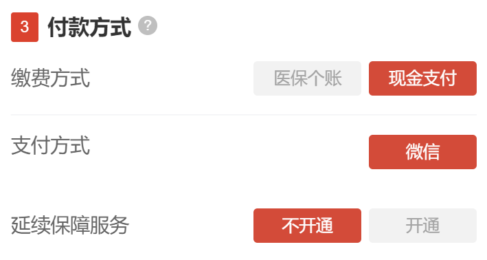 5、选择付款方式,选择“医保个账”或“现金支付”,选择是否开通延续保障服务,点击“立即参保”。