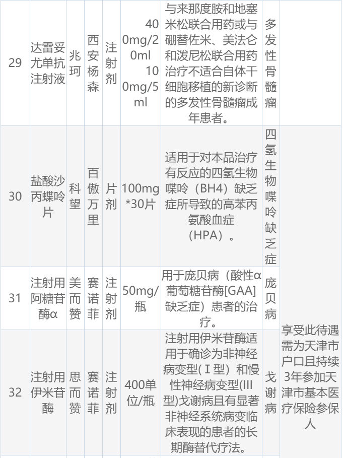 2022天津惠民保特定高额药品: