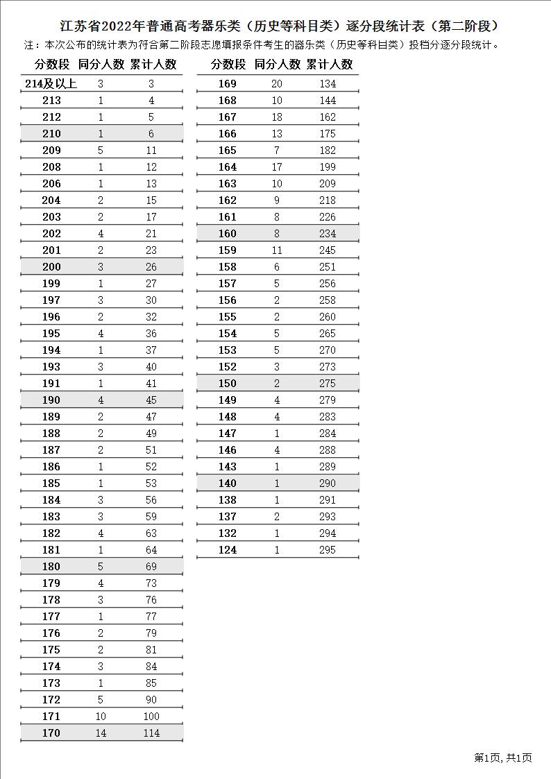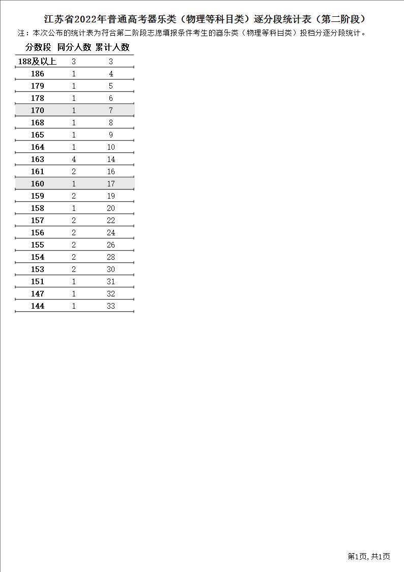 江苏省2022年普通高考器乐类(物理等科目类)逐分段统计表(第二阶段)1