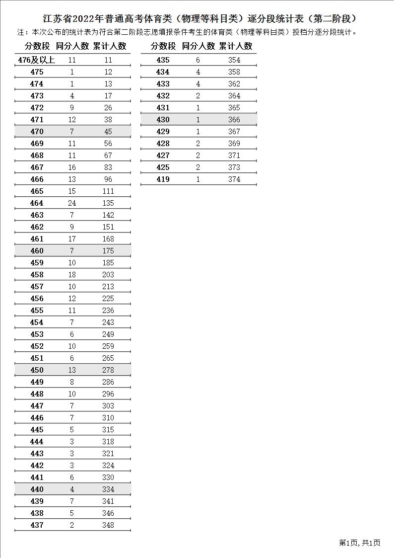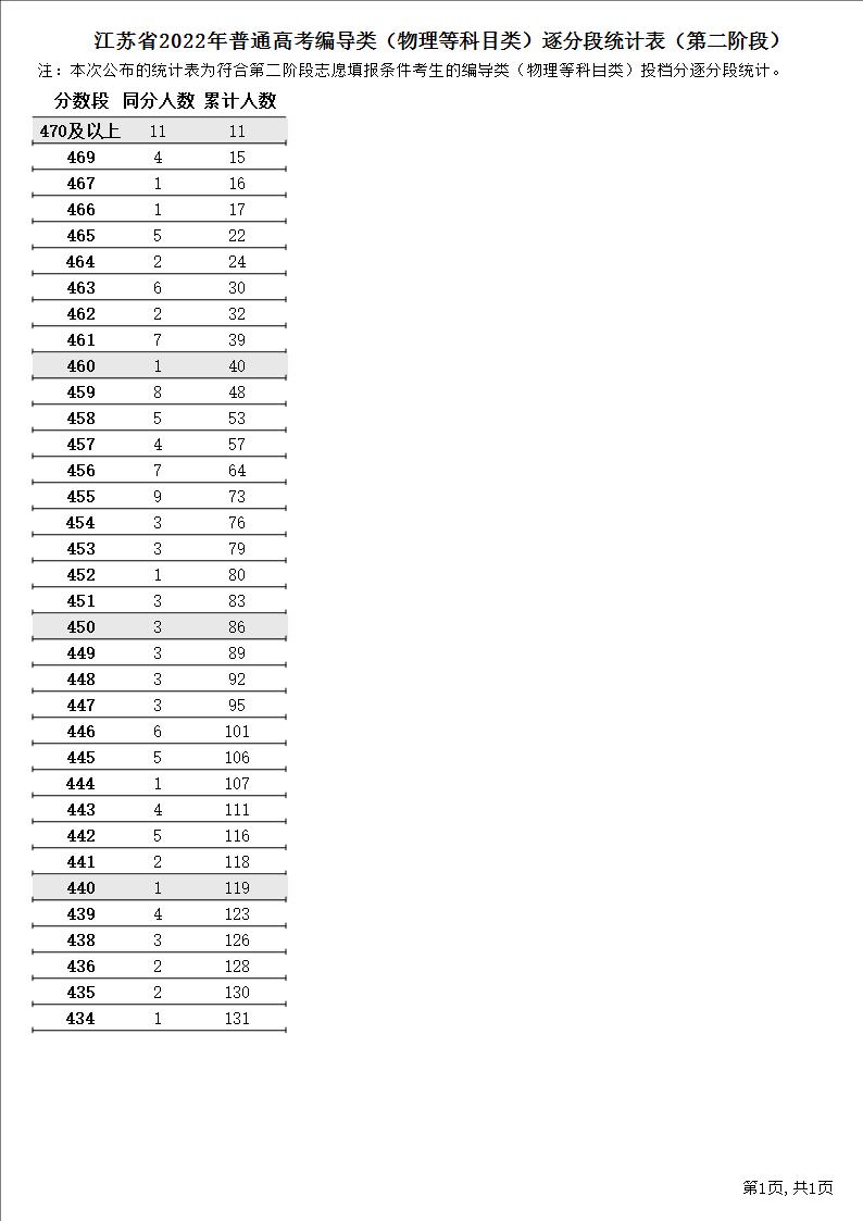 江苏省2022年普通高考普通类(物理等科目类)逐分段统计表(第二阶段)1