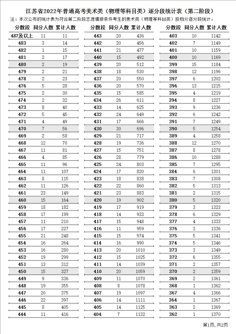 江苏省2022年普通高考美术类(物理等科目类)逐分段统计表(第二阶段)1