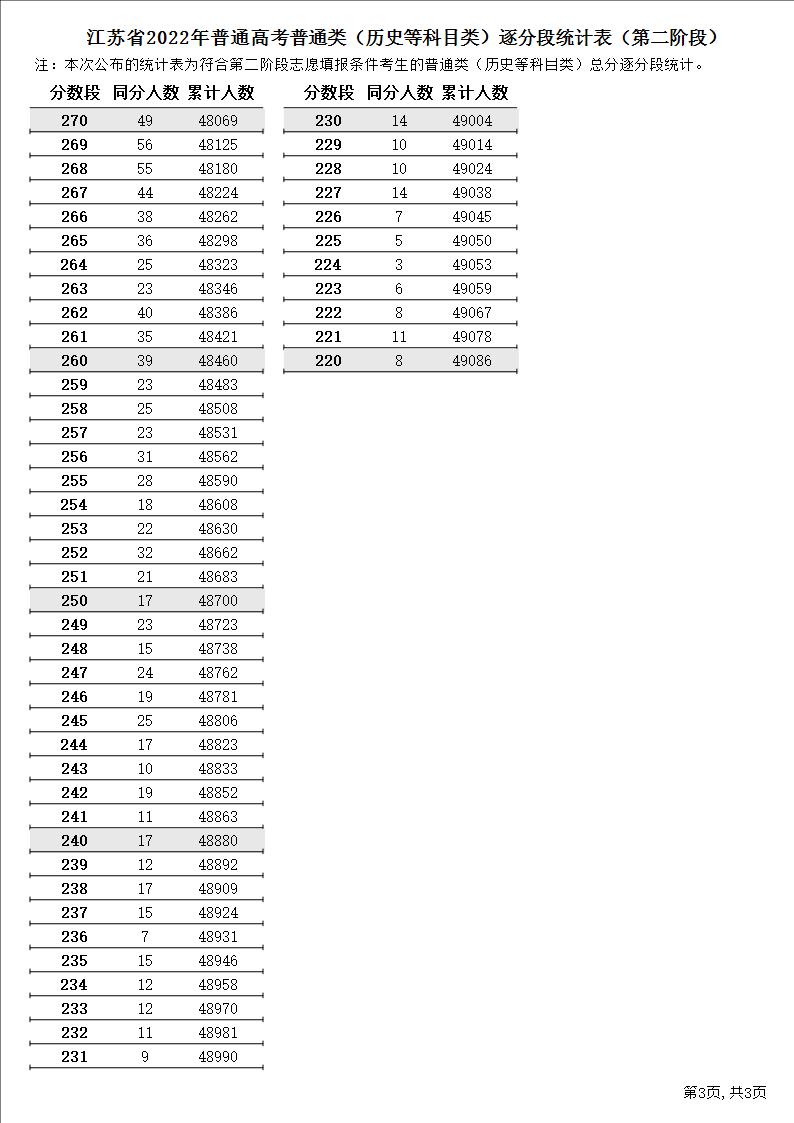 江苏省2022年普通高考普通类(历史等科目类)逐分段统计表(第二阶段)3