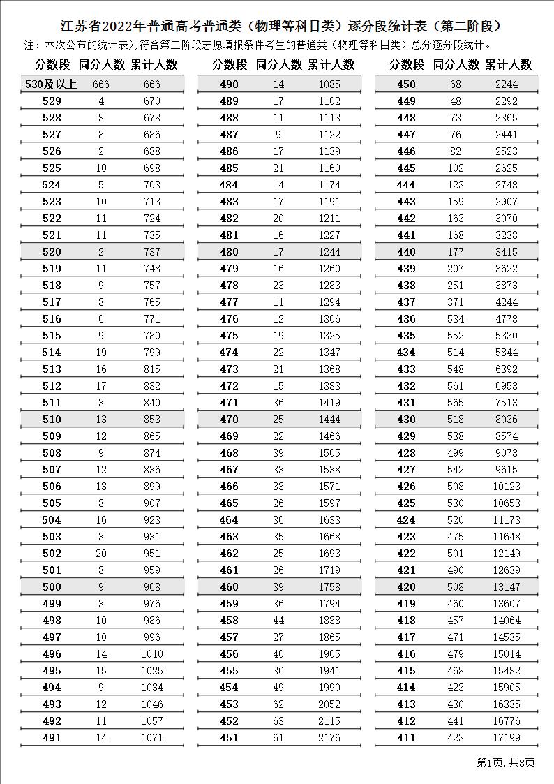 江苏省2022年普通高考普通类(物理等科目类)逐分段统计表(第二阶段)3