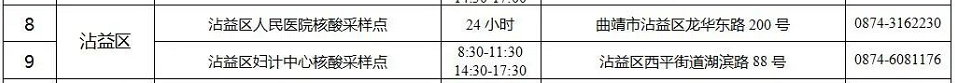 曲靖沾益区免费核酸检测点有哪些