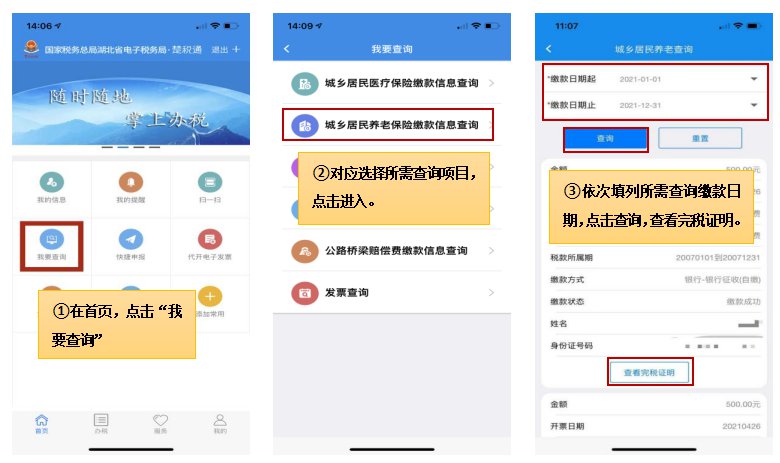 可查询本人及代缴人员城乡居民养老缴款信息并打印完税证明。通过协作征收银行缴纳的社保费也可在此功能查询打印完税证明。