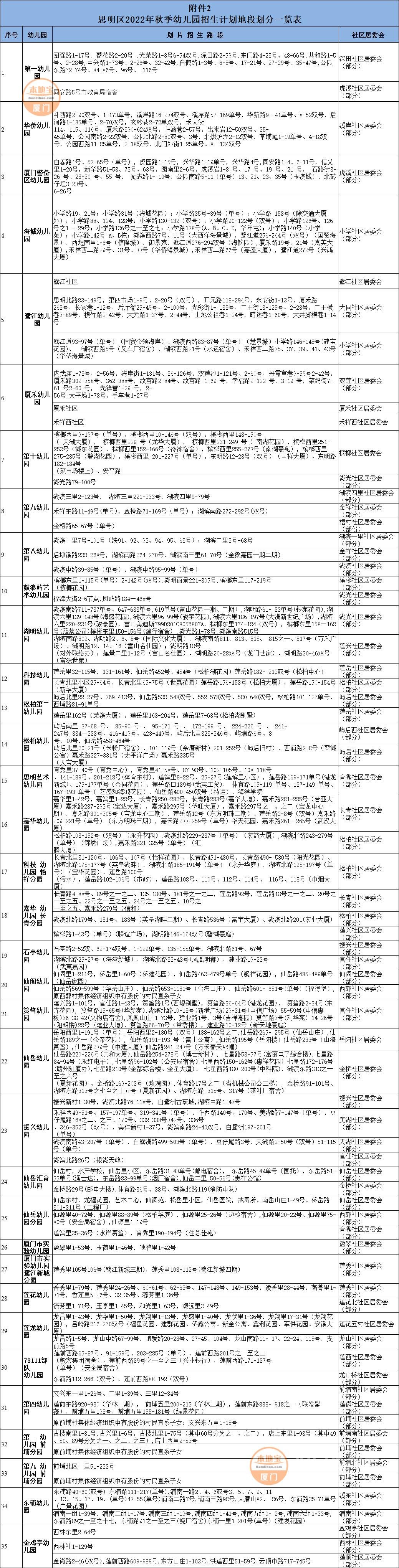 2022年厦门思明区幼儿园划片招生一览表
