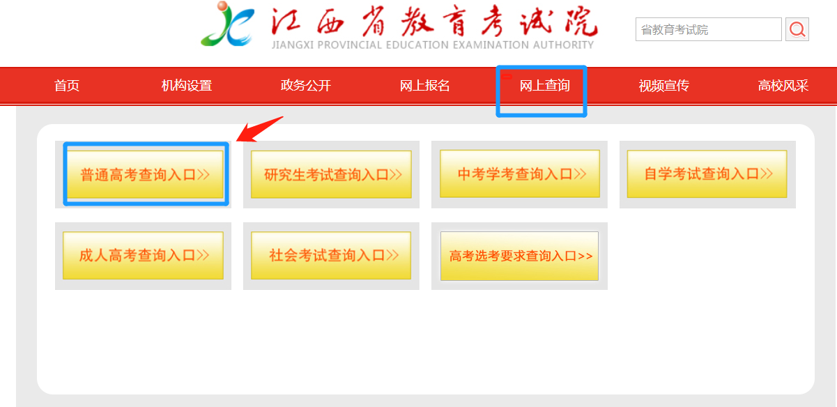 登录生源地教育考试官网查询,如登陆“江西省教育考试院”,输入准考证号及其他相关信息查询。