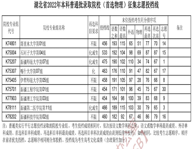2022湖北高考征集志愿投档线(本科普通批)