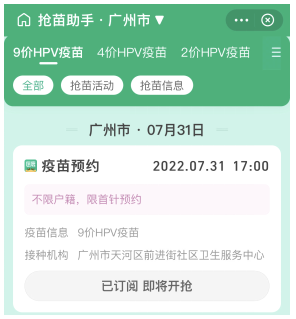 注:点击“开启订阅”,抢苗时间不错过!疫苗开放预约时,订阅按钮将变为预约入口,点击立即预约