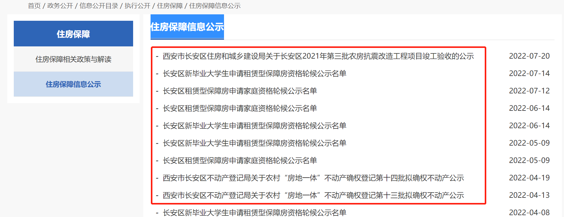点击进入:西安长安区住房保障信息公示