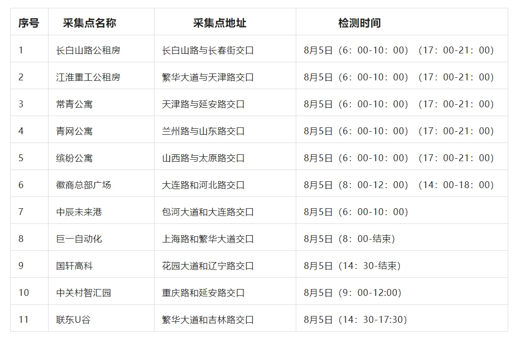 8月4日起合肥开始新一轮区域免费核酸检测不要忘记了哦另外,合肥市常态化区域免费核酸检测统一调整为7天1次.
