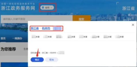 登录浙江政务服务网,定位到隶属统筹区,点“确定”