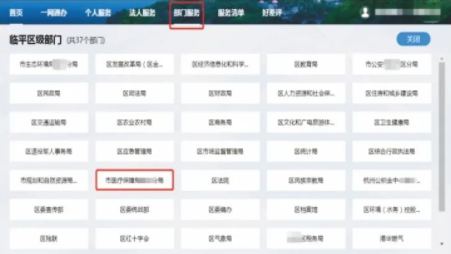 选择部门服务,找到隶属“市医疗保障局XX分局”