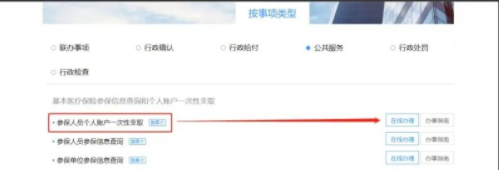 选择“公共服务”,找到“参保人员个人账户一次性支取”,点“在线办理”