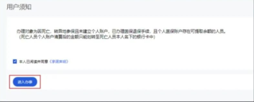 阅读用户须知,点“进入办事”