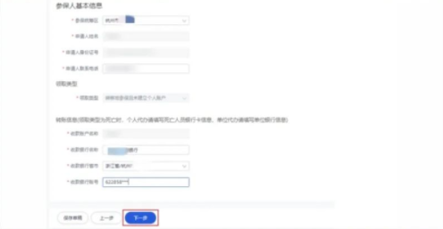 选择统筹区,填写银行信息,点“下一步”