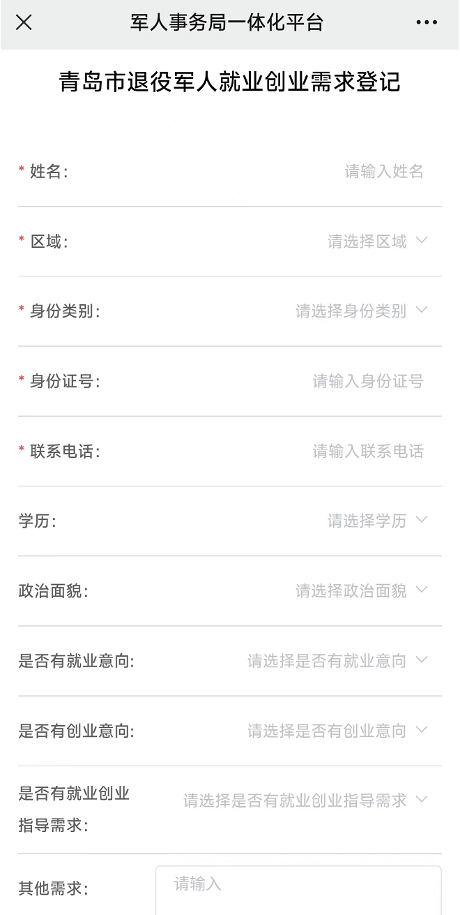 退役军人就业创业需求登记小程序>>> ↓↓↓