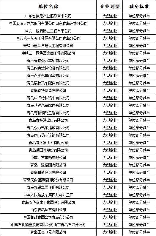 青岛市阶段性减免企业社会保险费划型名单公示