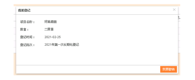 (2)可进行登记的用户,点击右上角“登记”按钮,打开“我的登记”页,选择登记项目,点击“我要登记”。
