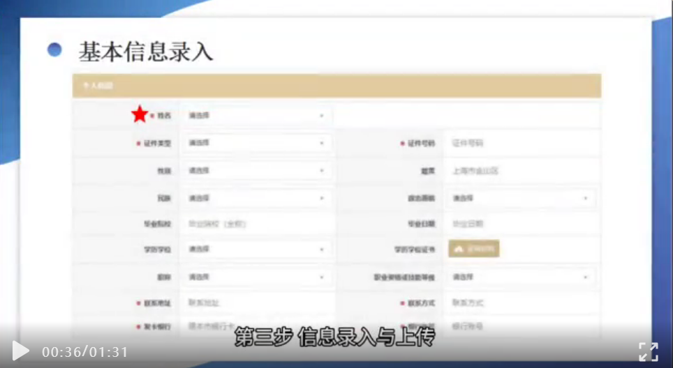 第三步:信息录入与上传,此页面将自动展示符合申请条件的人才选项,同时将自动匹配此前上传的人才信息,如信息有更新可进行修改