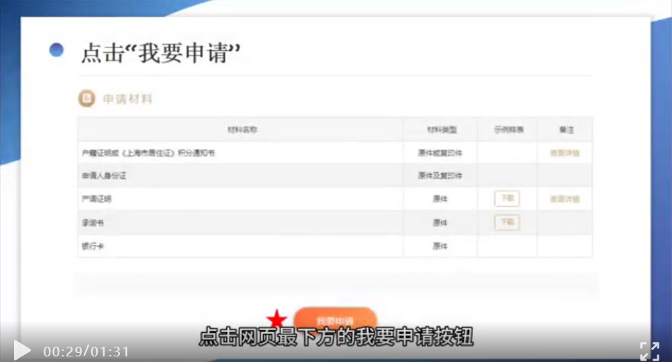 查看申请材料,点击网页最下方的“我要申请”按钮