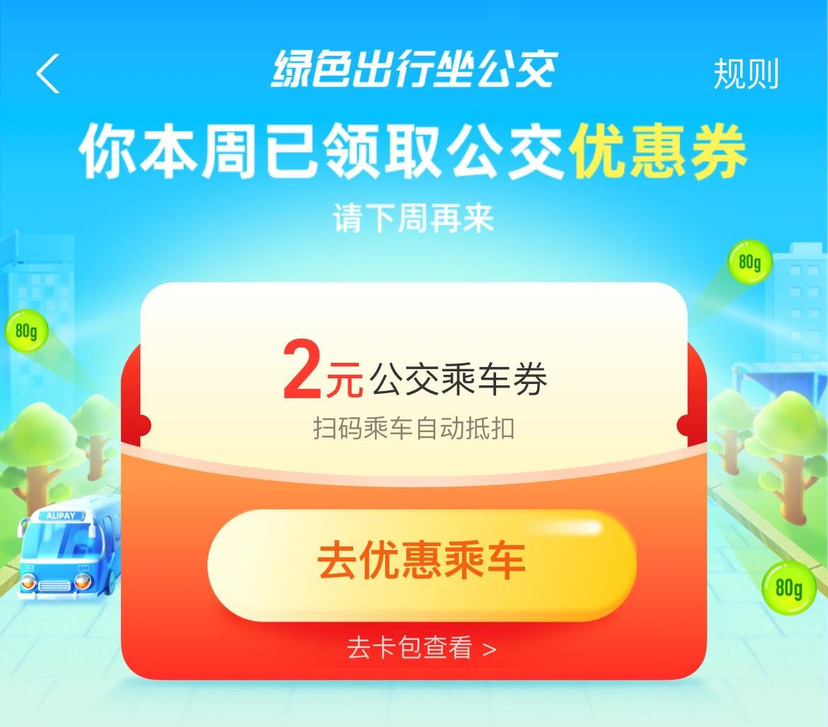 第三步:领取成功,乘车券即时发放到支付宝——卡包里面。