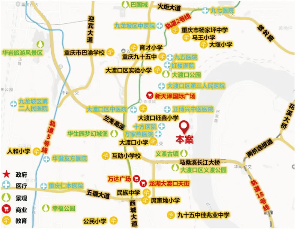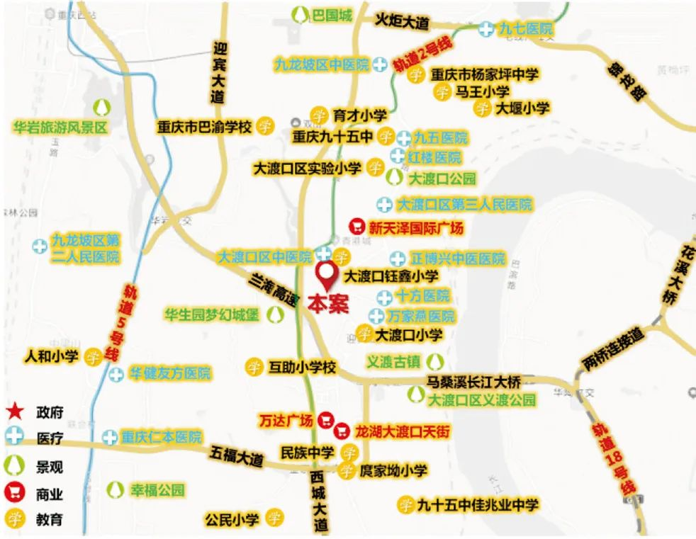 商业:龙湖大渡口天街、万达广场、华宇锦绣广场、新天泽国际广场。